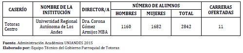 Educación Superior parroquia Totoras